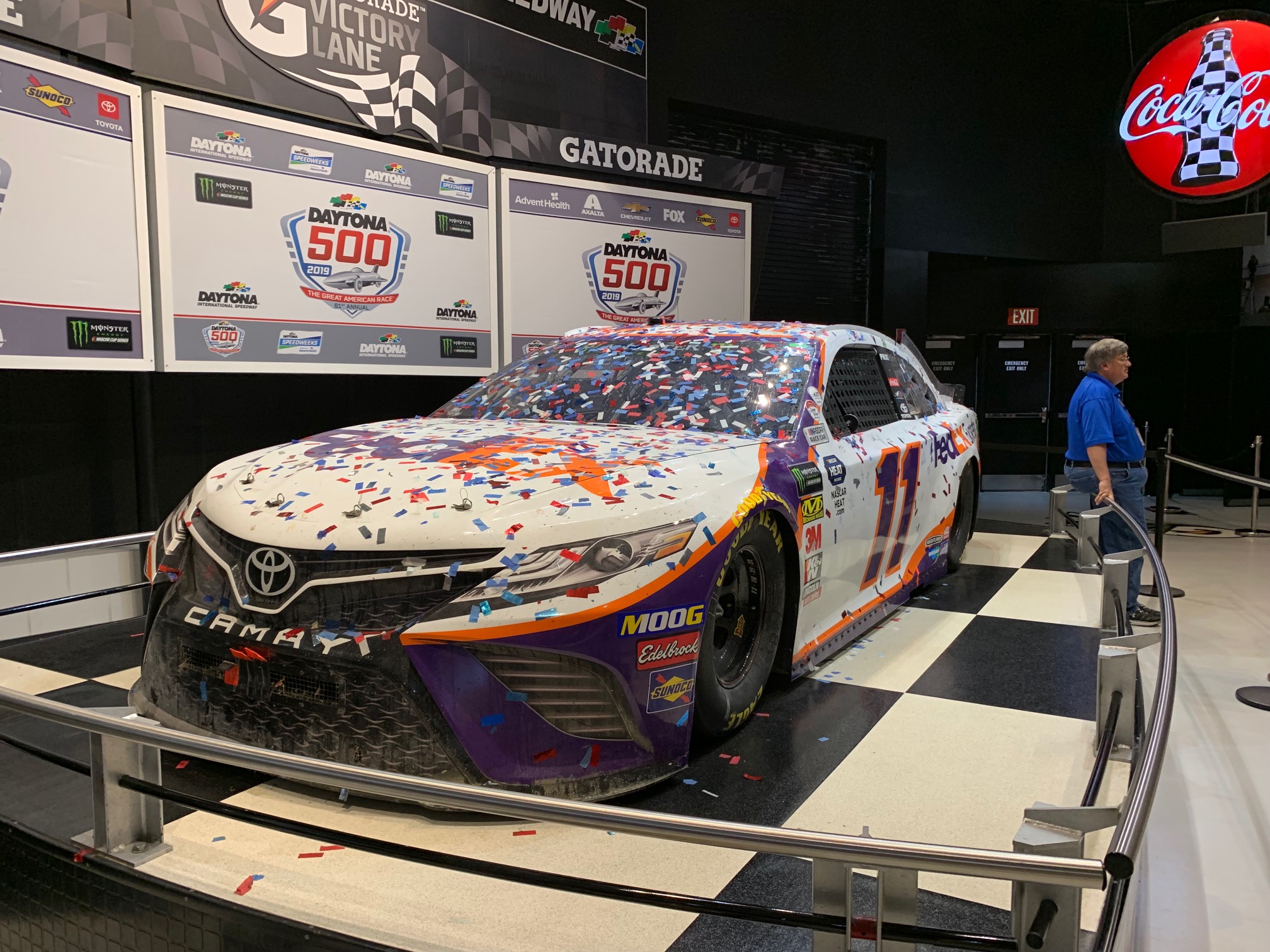 Our last stop was the Daytona Speedway Hall of Fame and Museum. Inside the entrance is Denny Hamlin’s Toyota which won the Daytona 500 this past February. It’s tradition for the 500s winning racecar to be put on display in the museum for one year until the next 500 winner is crowned. The car is displayed in the same condition as shown on t.v., soda, champaigne, confetti, and all kinds of asphalt and debris still clinging to the paint. The only thing done to the car is it’s drained of any remaining fuel. Inside the museum is the famous Hudson Hornet, cars from Dale Sr., Jeff Gordon, as well as a few funny cars, dragsters, and even a couple boats.