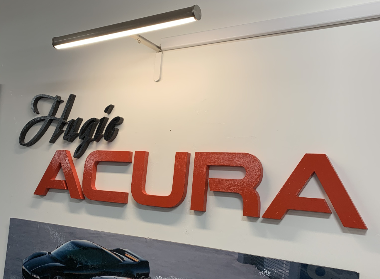 I’ve crossed a few more home-improvement projects off the list in the last couple of weeks, including something I’d been meaning to do for a while. Below you’ll see the last addition to the garage: A sign for my (pretend) dealership. The lettering is made from 3D foam from a company in LA called Front Signs. I told them the design I had in mind, supplied the artwork, and they mailed me a box with everything I needed including the template to get everything installed in proper alignment.