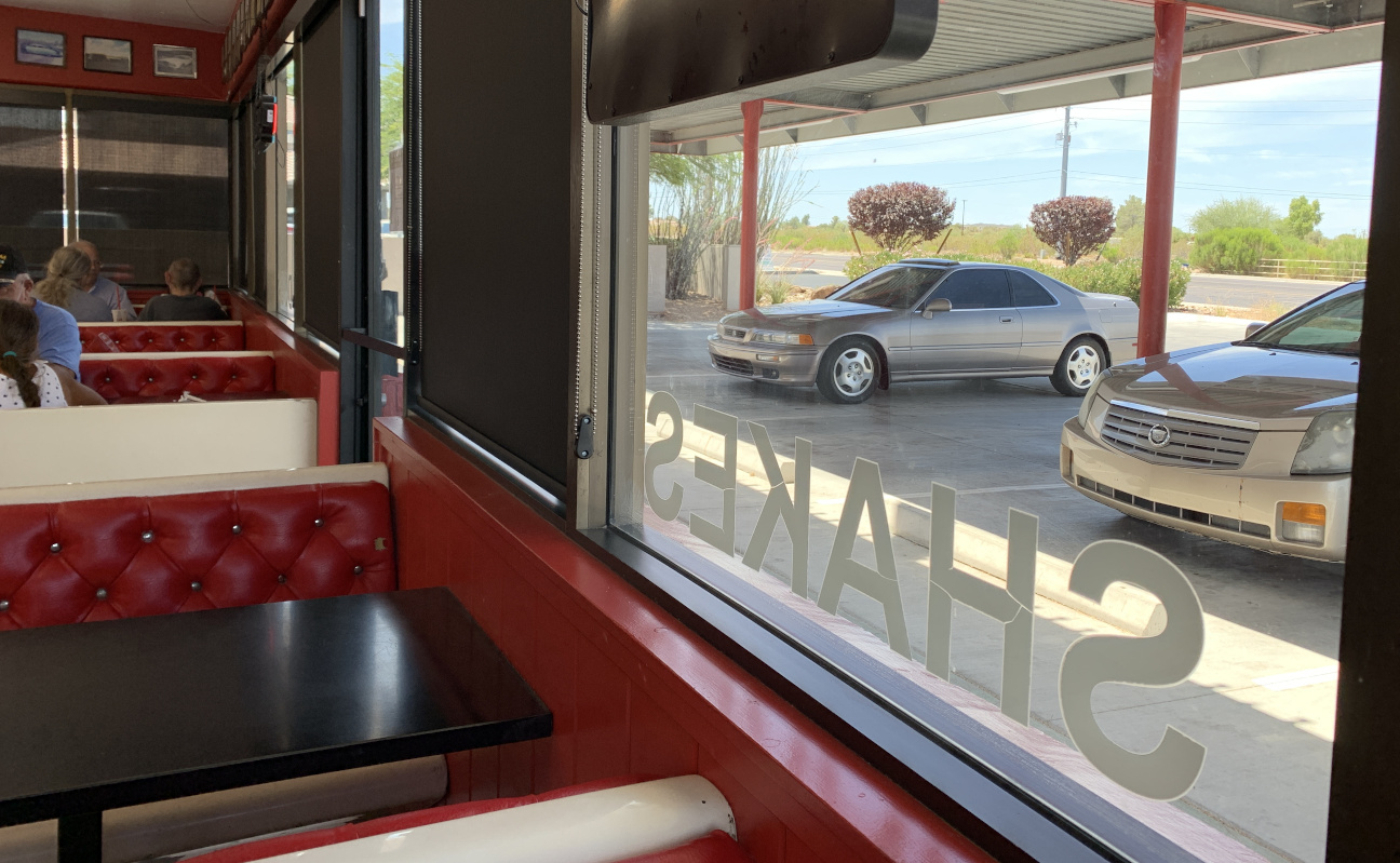 The highlight, of course, involved food. I had to sample the Green Chile Burger at a little drive-in called Screamer’s that I saw featured in a news article not long ago. I ate indoors – I don’t think they do in-car service at this drive-in, at least not this time of year. And the burger was everything it was cracked up to be. It feels like a special treat to eat like that nowadays, because my diet has changed a lot now that I’m eating at home. I’ve lost 15 lbs this year.