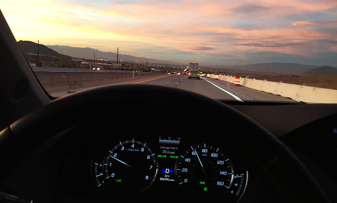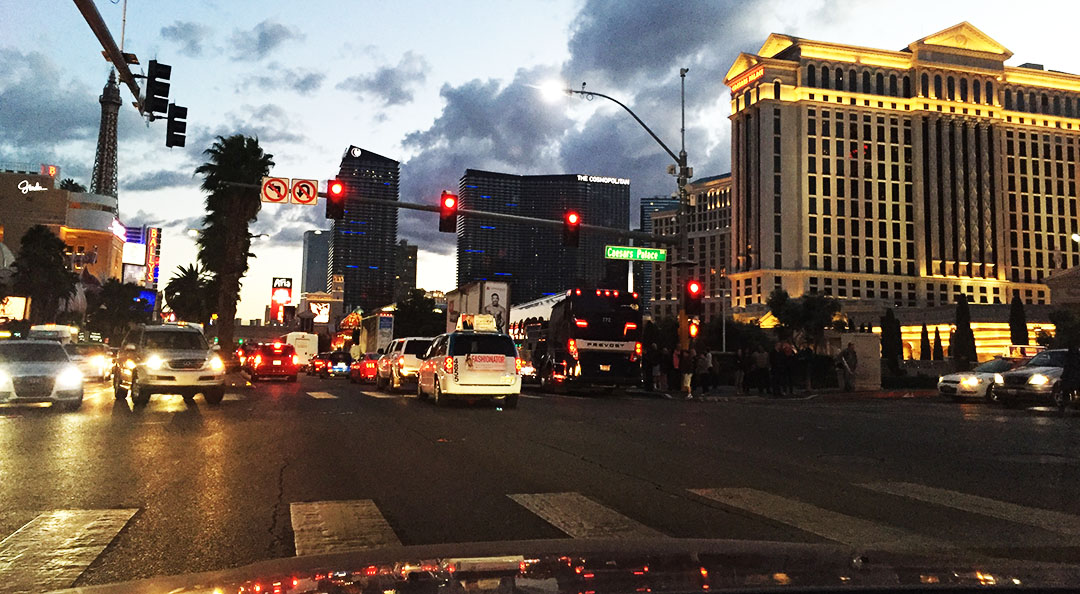 Cruising the Strip after the show, as seen from my friend Jay’s Mercedes-Benz.