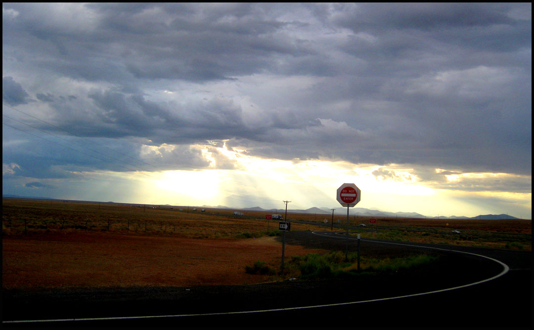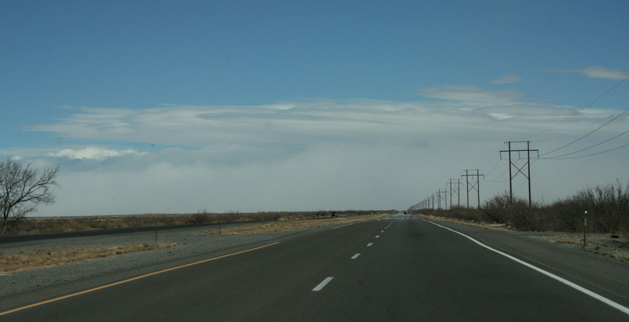 After we made our way back to US-70, weather ahead looked good but there were clouds looming in the distance. Or were they not clouds after all?