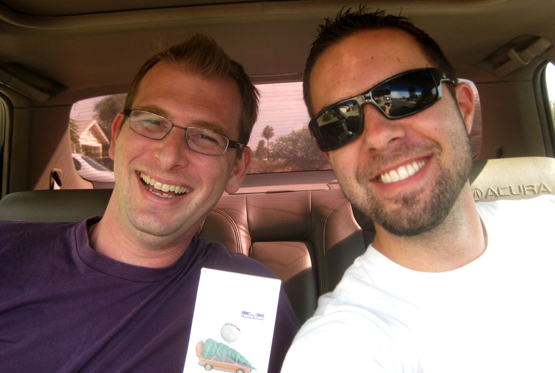 Departing PHX. Kevin holds up this year’s Nat’l Lampoons Christmas Vacation ornament which he just picked up – complete with Clark Griswold’s Taurus and a tree mounted up top.