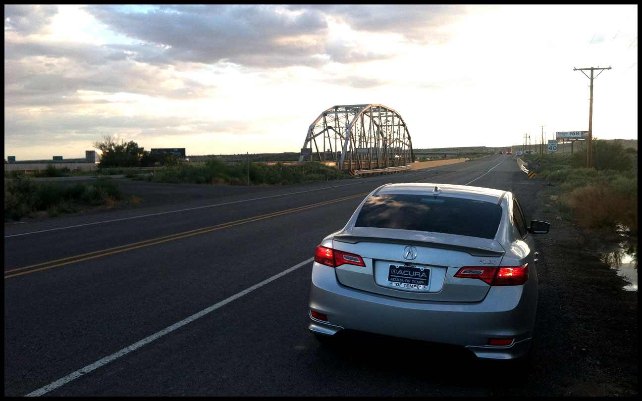 Last Route 66 destination today was the Rio Puerco Bridge. It’s located about 20 miles west of Albuquerque and parallel to what is now Interstate 40. Back in the day (1933, to be exact) this was part of Route 66. The timing was just right for a few sunset pictures when visited the bridge, so here are the shots I got of the ILX.