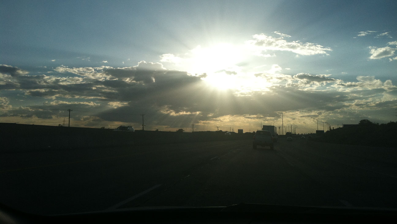 Sunrise in my rearview mirror departing the Dallas – Fort Worth Metroplex on Sunday morning.