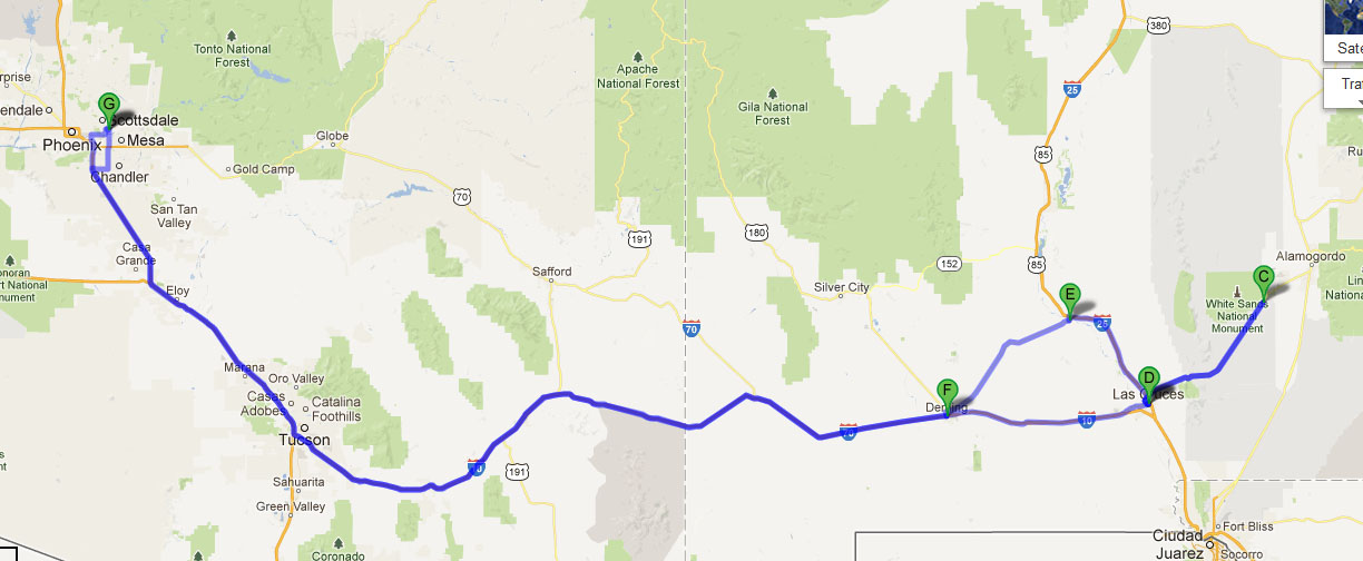 Ever since my friend Jason and I met up in Bisbee a couple of months ago, we’ve been wanting to coordinate another drive together. This time, I put the planning responsibility on Jason and traveled to his hometown in Las Cruces, New Mexico. I grabbed my friend Chris and we hit the road around 3:00 p.m. on Friday afternoon to head eastbound on Interstate 10 from the Phoenix, Arizona area.