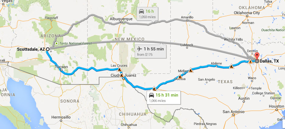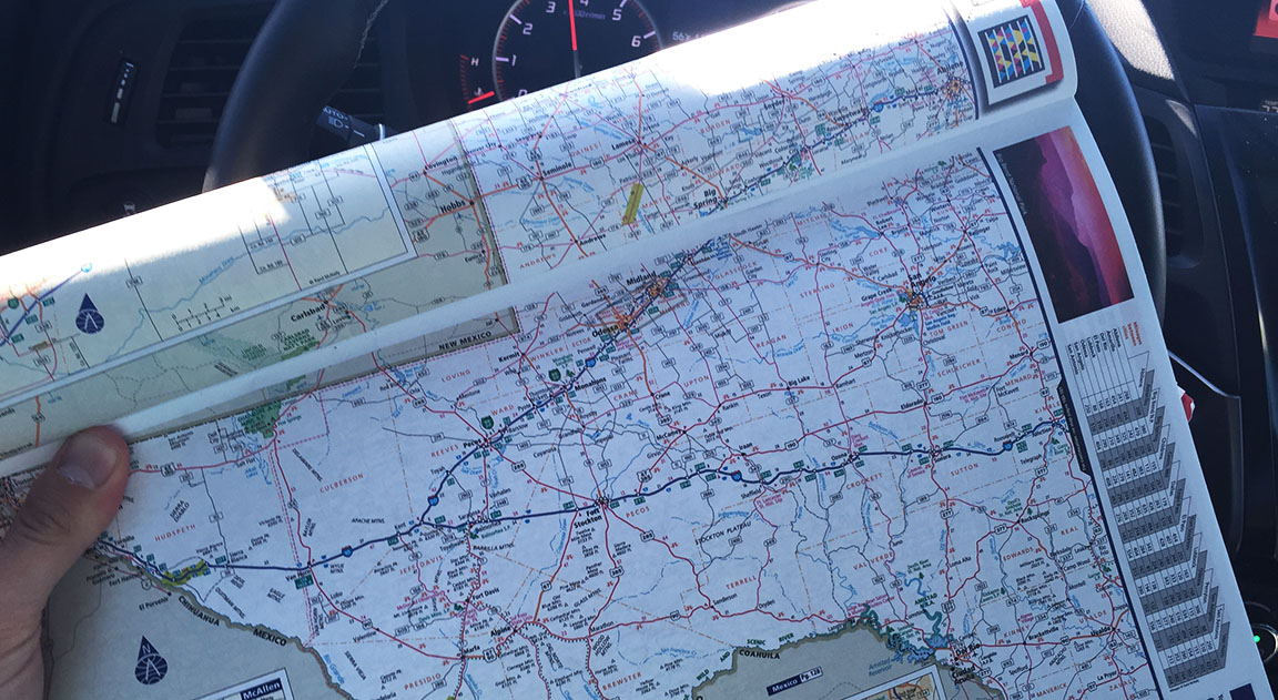 You know you’re in for a boring drive when the GPS indicates your next turn is in 535 miles!