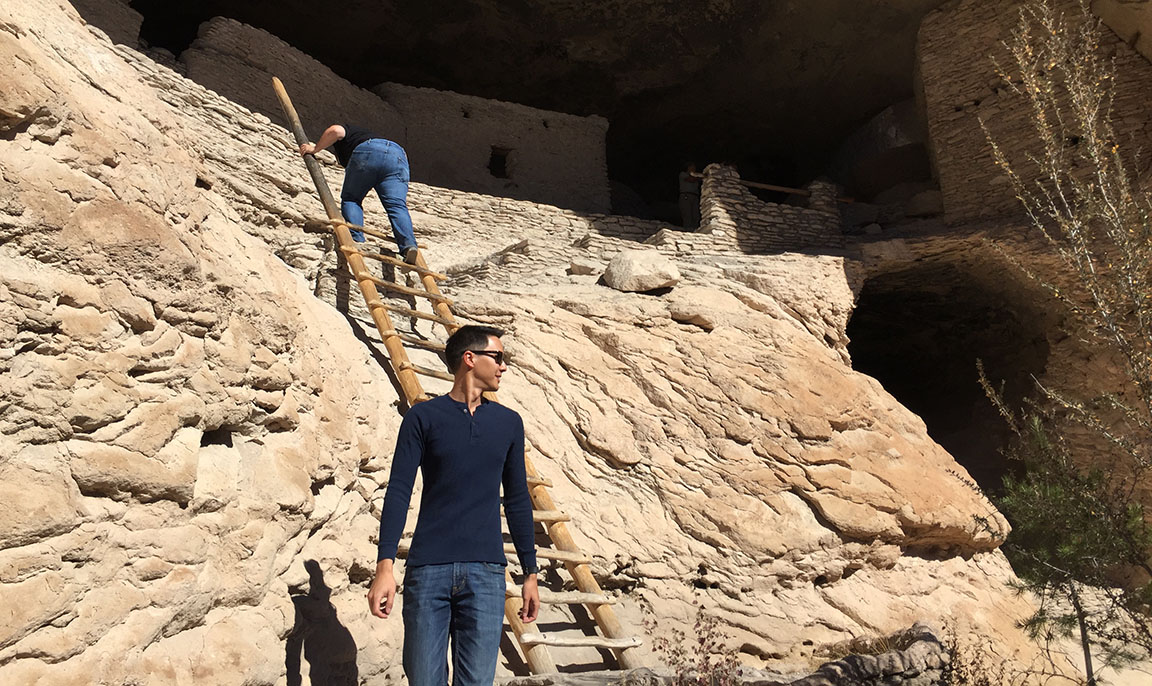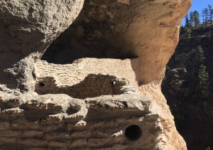Much of the Mogollon peoples’ lives remains a mystery, and part of our tour consisted of a Q&A session with ranger Connie. Connie took the time to point out a few key features and asked us what we thought they were. They included a grinding stone, pictograph images painted on the walls, and architectural features of the caves. Today, there are wooden step ladders leaning to the various rooms but some of the original infrastructure – including rooftops over some of the rooms – are now gone. It took us about an hour to hike the circle.