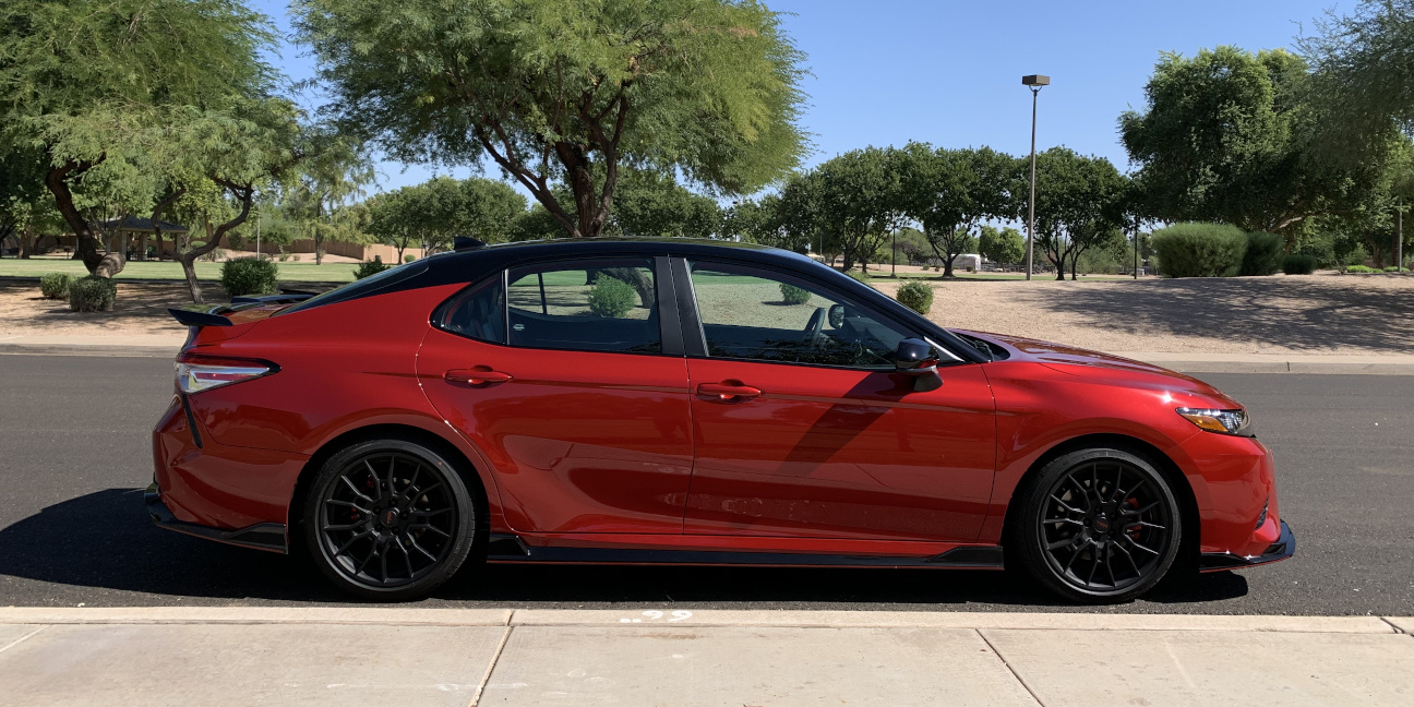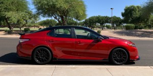 The standout vehicle for me – and I never thought I’d say this – was a 2020 Toyota Camry with special “TRD” (Toyota Racing Development) add-ons. A Camry with sporting aspirations? Unheard of. But all it takes is one look at the aero treatment, the custom interior, and the stunning color to know that this Camry is a little something special. I ran it through the gears (8-speed automatic, of course) in a spirited launch up the Loop 202 onramp and enjoyed the 301-horsepower V6’s exhaust note.