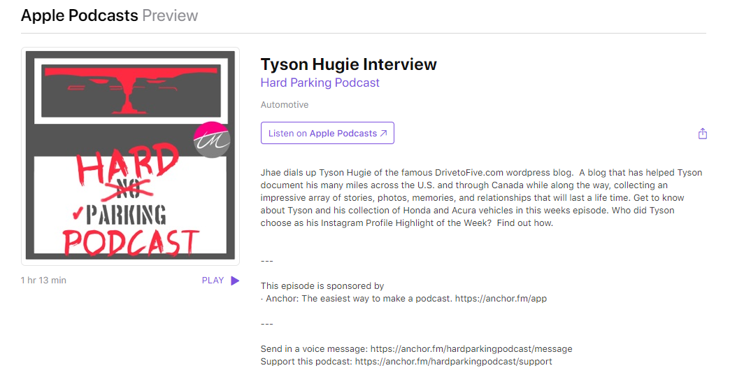 If you have time, check out this hour+ long podcast that I was featured on recently with my friend Jhae who hosts “Hard Parking,” featured on Spotify and Apple Podcasts.