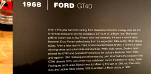 This one is particularly important in racing history. It’s a 1968 Ford GT40 that won the 24 Hours of Lemans race two times – in 1968 and again in 1969. It made 331 laps averaging 115 miles per hour. Makes me dizzy just thinking about it.