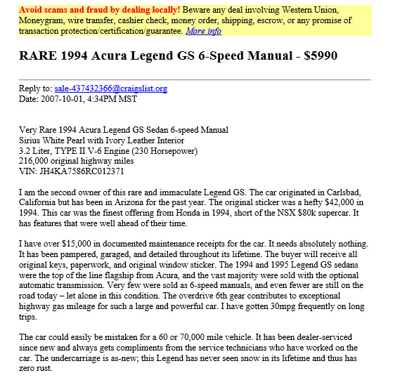 That was Monday. Wednesday night I got a call from my salesman. They had a gray Accord V6 coupe which had been traded in that earlier that night. Might I want to come up on Thursday and look at it? I’m pretty sure I didn’t even let him finish the question before I said,”Yes, and don’t show it to anyone else!”