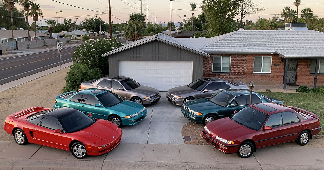 I decided to have a little fun bright and early on a Sunday morning and stage my cars in “brochure” fashion like a photo that might have appeared in a 1991 through 1993 full-line pamphlet from Acura, since the 6 cars included there are the full 6 body styles that were available during those years. Luckily I only had one neighbor drive by at 6:00 a.m. while I was on top of my step ladder looking like a goofball.