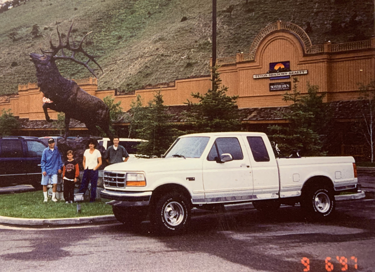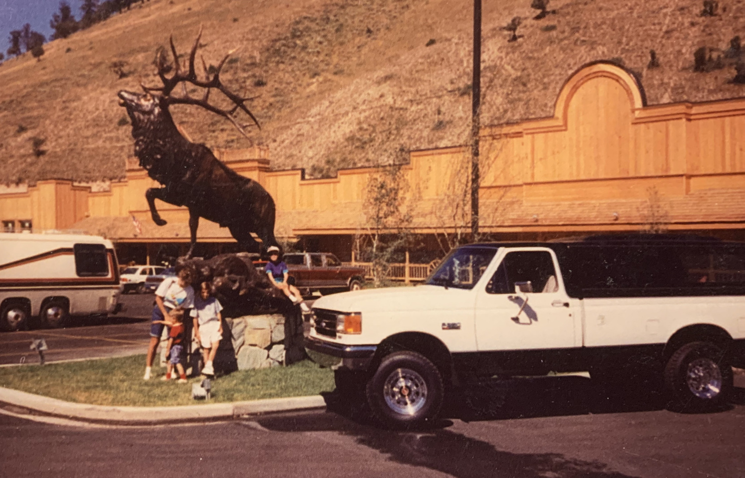 Throwback photo series – our family has a tradition of taking photos by this elk statue in Jackson. Here we are in about 1992.