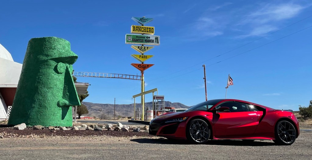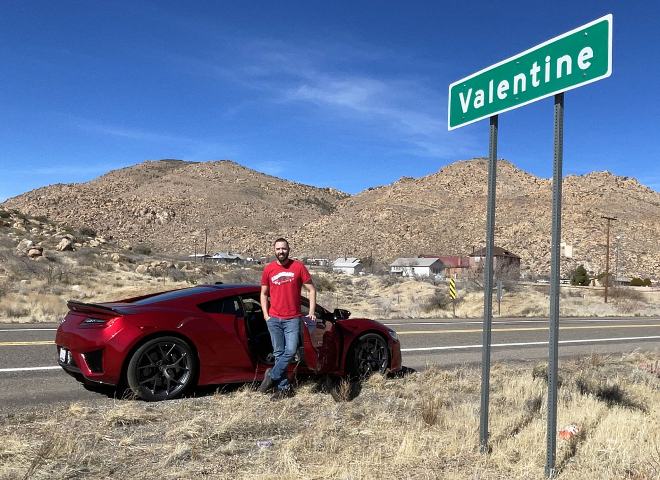 It seemed appropriate that several stars aligned during the 7-day period that Acura granted me the keys to a 2021 NSX. It was Valentine’s Day weekend, the car was painted Valencia Red, and I’d been itching to get out of town for a road trip for some time. I remembered that Arizona is home to a community called Valentine, and the rest is history: I took a 500-mile day trip to check it out.