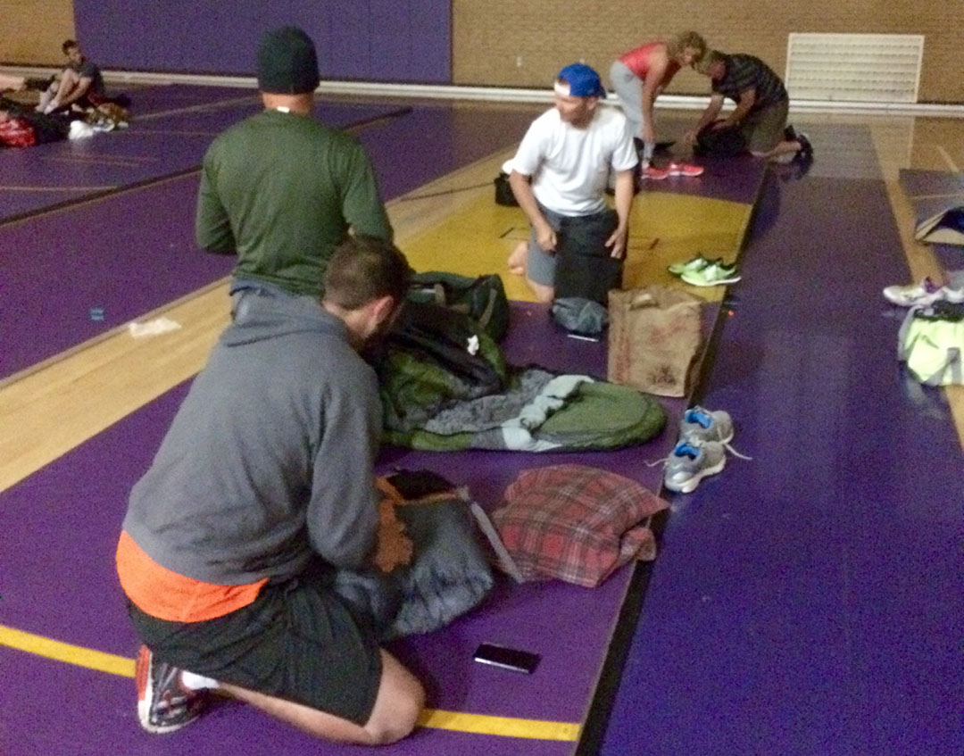 That was a refreshing way to spend the morning and it definitely helped wake me up. Once again we filed through our segments and tried in vain to catch shuteye when we weren’t the ones pounding the pavement. Soon, the sun started peeking over the horizon and Day 2 had begun. We arrived in Coalville, Utah at North Summit High School for our next group break. They were selling hot showers for $2 and pancake breakfasts for $4. I gladly paid up! After that, we rolled our sleeping bags out onto the floor of the gymnasium and shut our eyes for a little while.