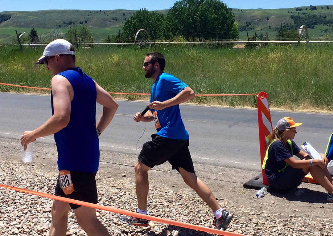 Water bottle sloshing in hand, I did my best to keep a consistent pace up the grade, but I had to slow it down to a power-walk a couple of times to keep from overheating. My van waited for me at the top of the hill and my mom threw a water-soaked cloth around my neck. That gave me enough motivation to press onward. It was an amazing feeling to finally crest the summit and be able to see the next exchange location within view. I gladly passed Damon the bracelet and felt a huge sense of relief, having completed my last part of the relay race.