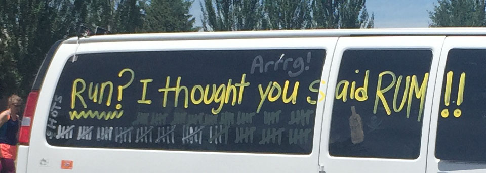 When the rest of us we weren’t running, six of us (5 runners + our driver, Mark) rode along in a rented black 2015 Chevy Suburban (“Van 1”) and provided “support” to our team member who was on deck. I spent most of my time in the back seat trying to avoid motion sickness as we frequently did U-turns and re-routed to find our way around. A second Suburban (“Van 2”) carried the other six members of our team and started after Van 1 members had each completed their first leg. Logistics confusing enough yet? As a first-timer to this event, I was amazed at how seamlessly it worked.