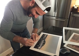 Conor signing an exclusive piece of artwork with his 2004 TSX featured.
