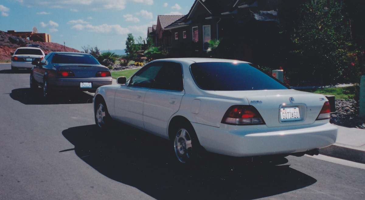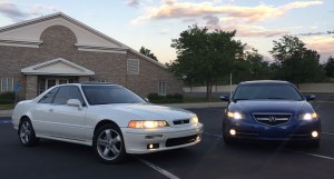 My friend Branson and I did dinner that evening in Salt Lake at one of my absolute favorite (though very “chain”) restaurants: Texas Roadhouse. I’ve known Branson for 14 years now. We initially connected – this won’t surprise any of my readers – through the car community since at the time we were both driving Acura Legends. His current Legend coupe, in fact, inspired my selection for the TL’s license plate, so it seemed appropriate that we lined the two cars up side by side for pictures.