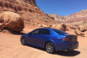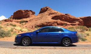 After a workday in St. George, I motored 4 more hours north. The TL makes a long-haul drive pretty effortless, thanks to its torquey V6 and low revs in 6th gear. The sound system – I’ve said this before but it deserves another mention – is absolutely rocking. You haven’t lived until you’ve heard Celine Dion “Us” blasting through an ELS Surround Sound System. Most of Interstate 15 is set at 80 miles per hour speed limits so the farmland passes by with ease and quickness.