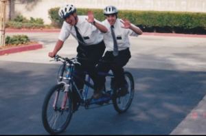 Cache’s experience was a lot like mine: I spent the years 2001-2003 in southern California on a similar mission. Here my assigned “companion” and I were riding a tandem bike in September 2001.