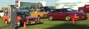 Model Citizen‘s Patrick Strong acted as the Master of Ceremonies throughout the day, spotlighting key exhibitors, rattling off raffle ticket numbers for prize winnings, and conducting the awards presentation at the conclusion. Meanwhile, the lawn filled up with hundreds of Japan’s best creations: in all, about 150 Nissan / Datsun vehicles, 87 Toyotas, about the same number of Hondas, some Mazda, Mitsubishi, Subaru, and a lonely Isuzu in the mix. Some were stock, while others were highly modified.