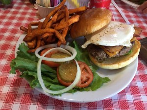 Our arrival back on Main was just in time for a somewhat comical attempt to find dinner. We approached six different restaurants about our wishes to get a bite to eat. One told us there was a 3-hour wait, and a few told us we were simply out of luck unless we had a reservation. Finally, we happened across “Flying Sumo” which seated us in about 45 minutes and served up a tasty plate of teriyaki salmon.